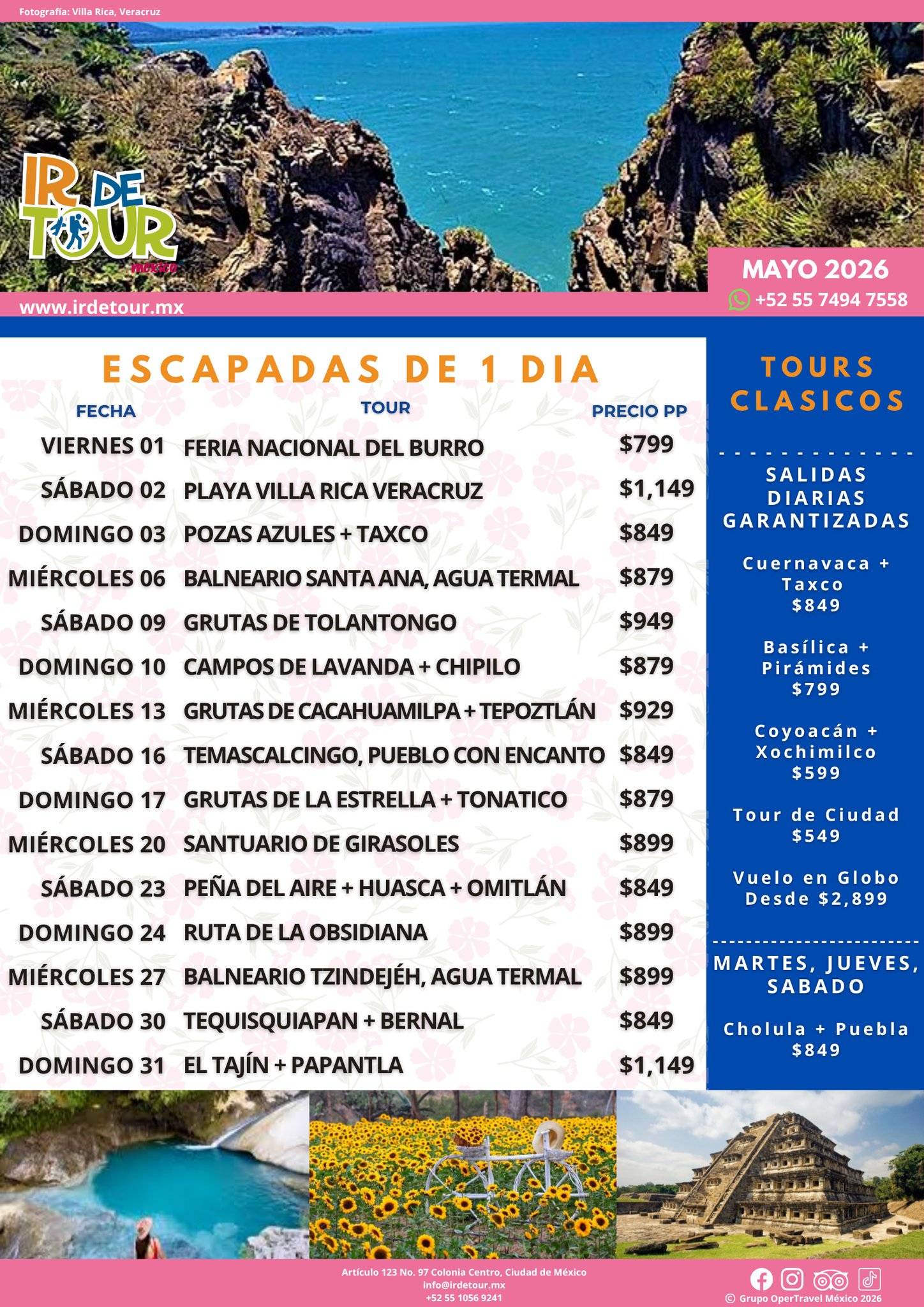 👉👉Aparta tus lugares con $350 por persona y liquida 24 horas antes del tour.